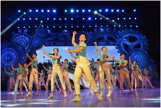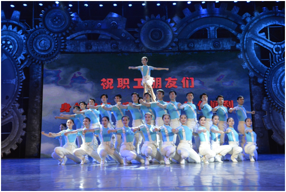 晚會(huì)在動(dòng)感十足、活力四射的開場舞《咱們工人有力量》中拉開帷幕