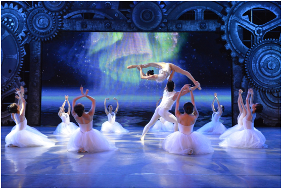雜技《肩上芭蕾東方天鵝》演員技藝非凡,給觀眾帶來強(qiáng)大的視覺沖擊