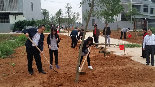 植樹現(xiàn)場,大家分工協(xié)作,揮楸挖坑,填坑培土,踩緊踏實,各個環(huán)節(jié)細致認真,一氣呵成。在一個多小時的植樹過程中,共種植了50顆風(fēng)景樹。放眼望去,一株株新植樹苗昂然挺立,大大提升了農(nóng)場小區(qū)文化廣場的“顏值”。漆處長一行表示,通過活動,既有效改善了農(nóng)場生態(tài)環(huán)境,又加強了農(nóng)場植綠護綠的濃厚氛圍,共同為踐行“綠水青山就是金山銀山”的環(huán)保理念貢獻自己的一份力量。