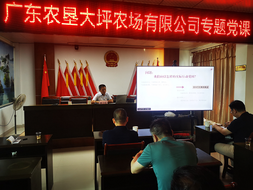 7月22日上午,揭陽農(nóng)墾集團(tuán)有限公司黨組成員林小松同志到大坪農(nóng)場(chǎng)有限公司講黨課,大坪農(nóng)場(chǎng)有限公司40多名黨員參加了活動(dòng),活動(dòng)由大坪農(nóng)場(chǎng)有限公司鄧建生同志主持。