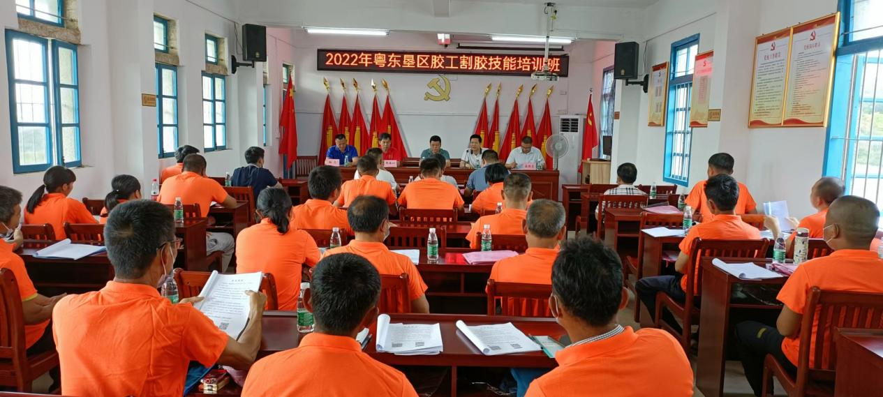 在廣東省農(nóng)墾總局及相關(guān)部門的重視和大力支持下,4月27日,2022年粵東墾區(qū)膠工割膠技能培訓(xùn)班(揭陽(yáng)班)在卅嶺農(nóng)場(chǎng)舉行開(kāi)班動(dòng)員會(huì)。揭陽(yáng)農(nóng)墾局主管領(lǐng)導(dǎo)、相關(guān)部門負(fù)責(zé)人,卅嶺農(nóng)場(chǎng)領(lǐng)導(dǎo),茂名農(nóng)廣校領(lǐng)導(dǎo)、專家、老師出席。