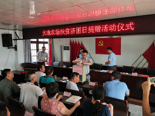 7月1日上午,大池農(nóng)場開展扶貧濟(jì)困日捐贈活動儀式,參加儀式人員有機(jī)關(guān)全體工作人員及各村(居)書記約50人,全體領(lǐng)導(dǎo)干部職工紛紛援手,為扶貧濟(jì)困出力。